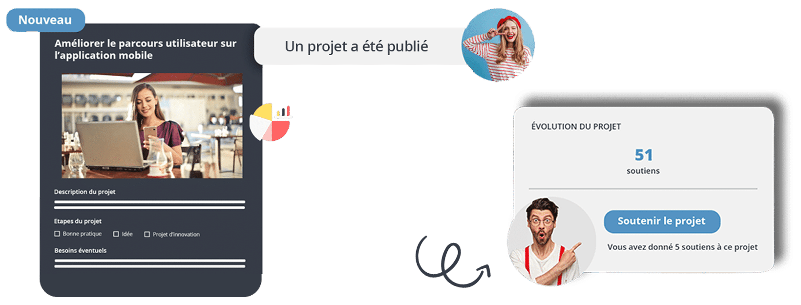 Lancez facilement des challenges, consultations ou appels à initiatives pour mobiliser vos équipes et votre écosystème.