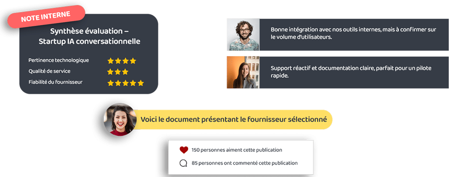 Une seule plateforme peut ainsi soutenir plusieurs dynamiques participatives dans l’organisation.